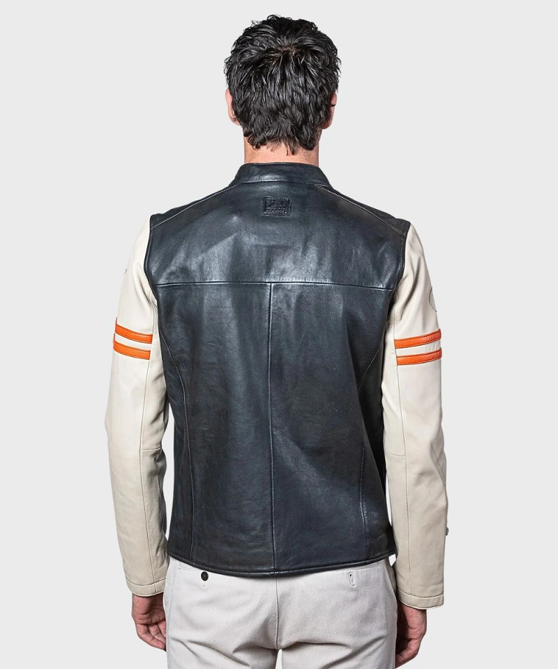 Men’s Vintage 24H Le Mans Karl ECRU Leather Jacket – Black & Cream
