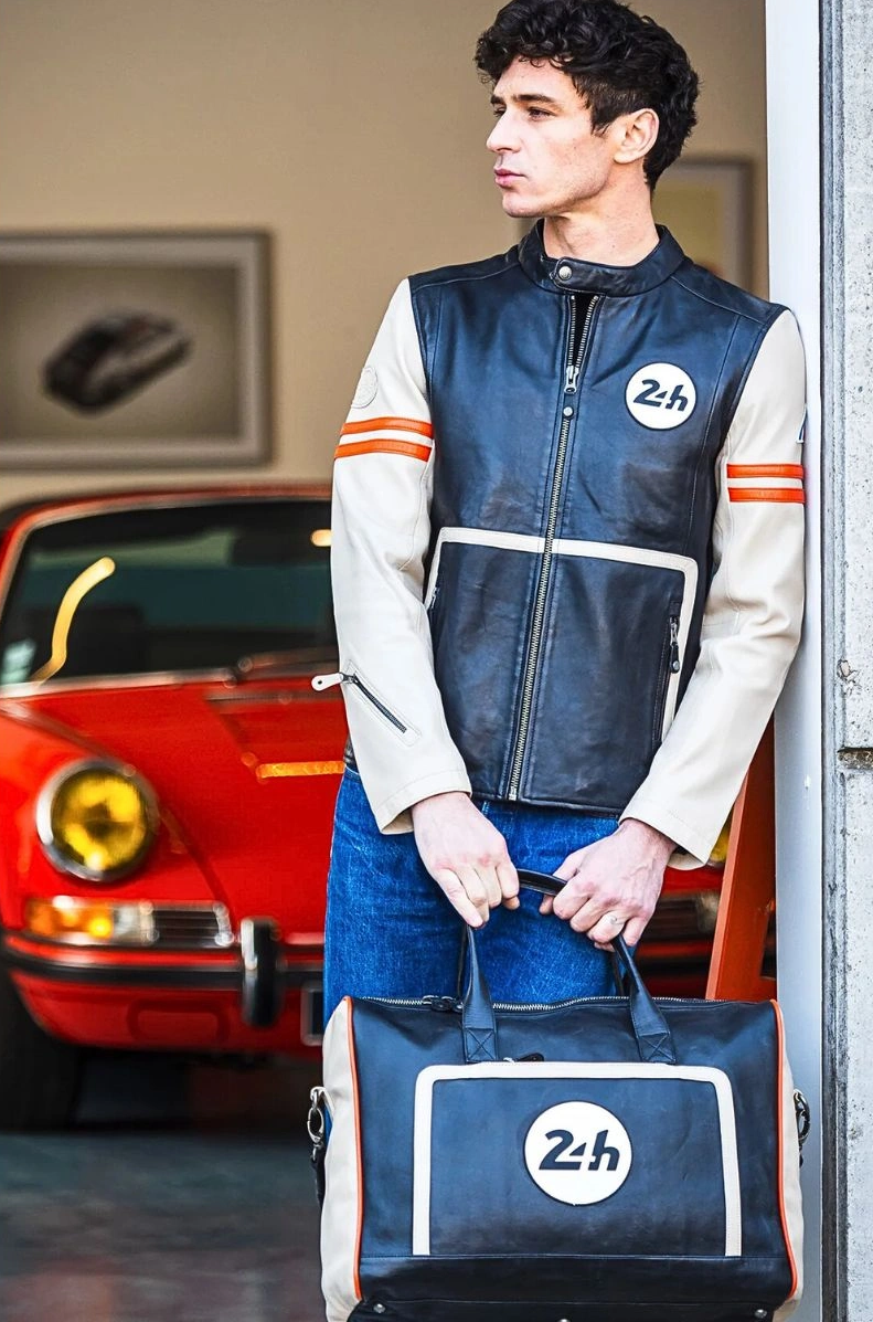 Meticulously crafted from premium leather with a specialized “aged” finish, the Karl jacket offers a soft, broken-in feel from the very first wear. Its structured silhouette is punctuated by authentic racing stripes and vintage-inspired patches, making it an essential statement piece for automotive enthusiasts and connoisseurs of timeless style alike.