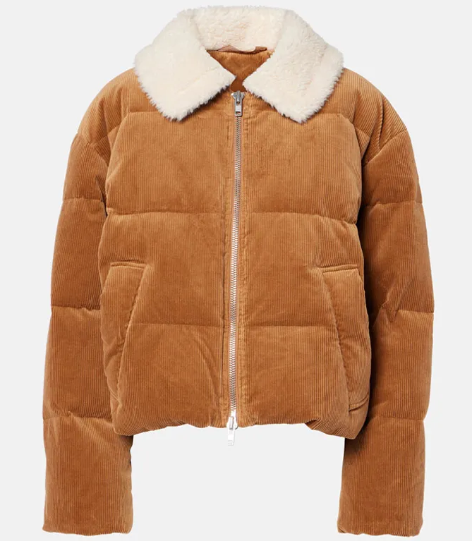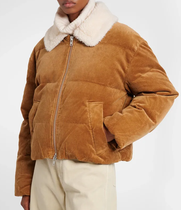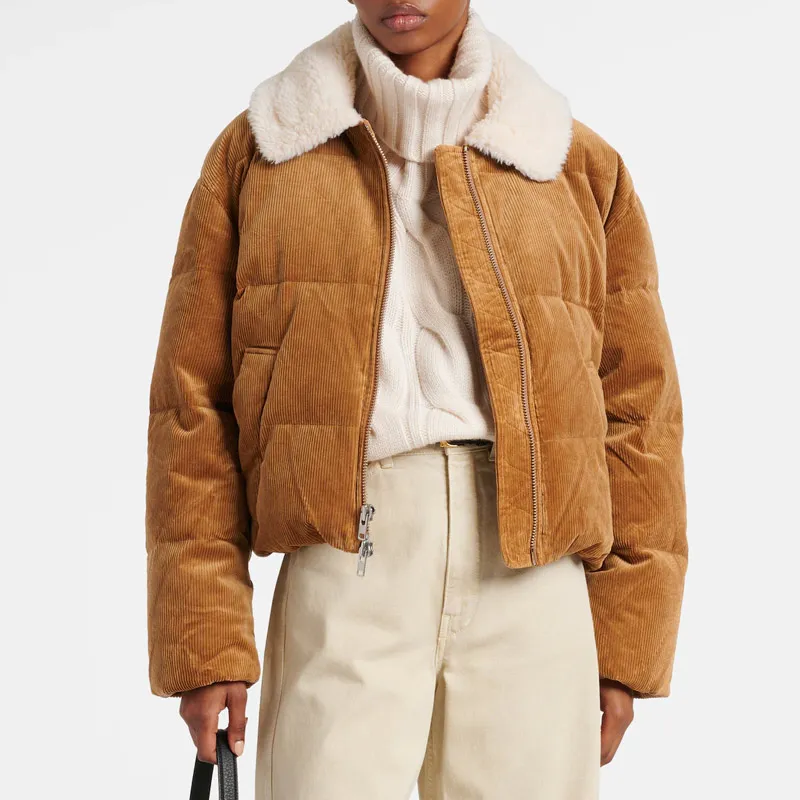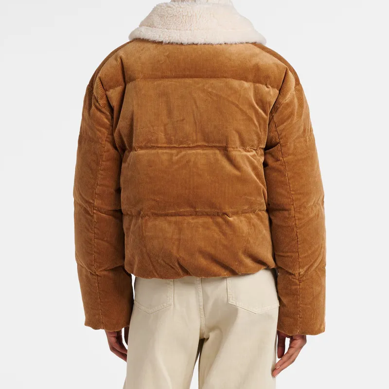 • Sherpa-Lined Collar & Interior: Features a plush, cream-colored faux-shearling lining that provides instant insulation and a soft contrast against the deep brown corduroy.