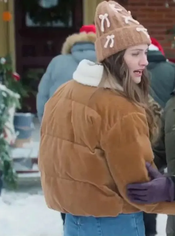 Capture the heartwarming spirit of the holiday season with the Sienna Holden Corduroy Jacket, inspired by Emily Hall’s character in the festive hit A Merry Little Ex-Mas. This piece is the epitome of “Cottagecore-Chic,” bringing a touch of nostalgic warmth and rustic reliability to your winter wardrobe.