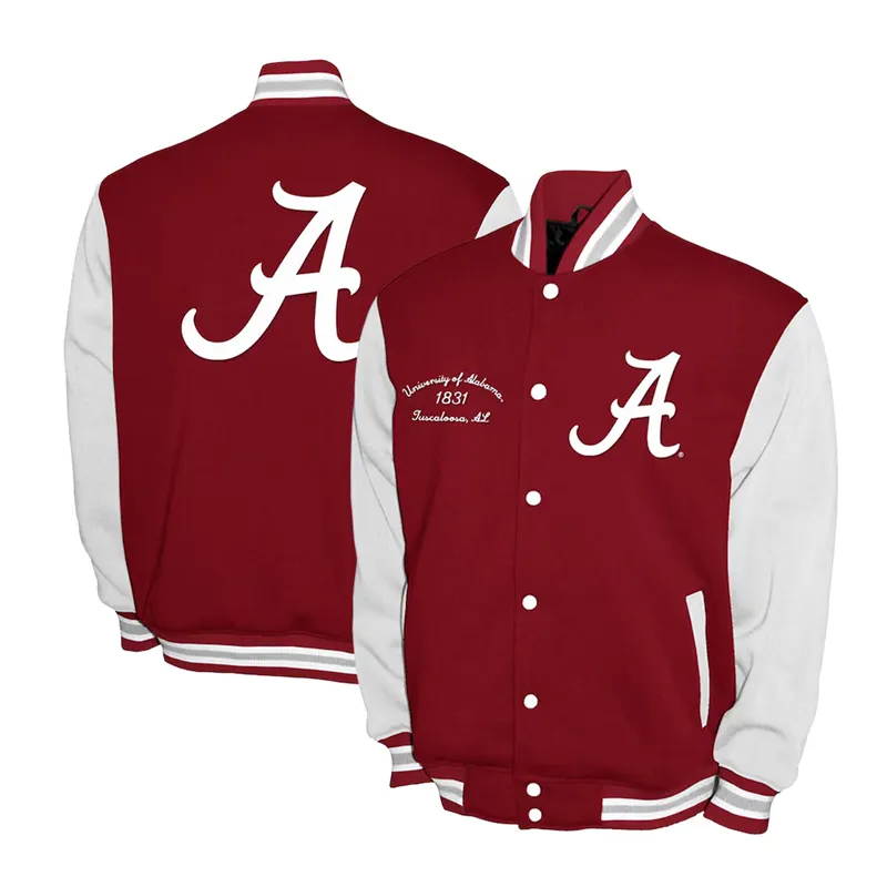 Alabama Crimson Tide Fleece Burgundy and White Varsity Jacket