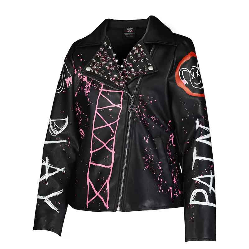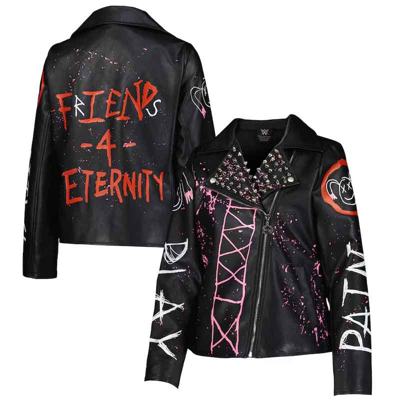 Step into the darkness with the Women’s Alexa Bliss Friends for Eternity Full-Zip Faux Leather Jacket – Black, inspired by the chilling return of WWE’s twisted Superstar at Royal Rumble 2025. This edgy, faux leather jacket captures the eerie essence of Alexa Bliss during her alliance with “The Fiend” Bray Wyatt, featuring detailed design elements true to her iconic look. Whether you’re channeling your inner Five Feet of Fury for a costume party or gearing up for the next WWE premium live event, this jacket is your perfect statement piece. Bold, stylish, and unmistakably Bliss — become part of the chaos and show the world you’re a Friend for Eternity.