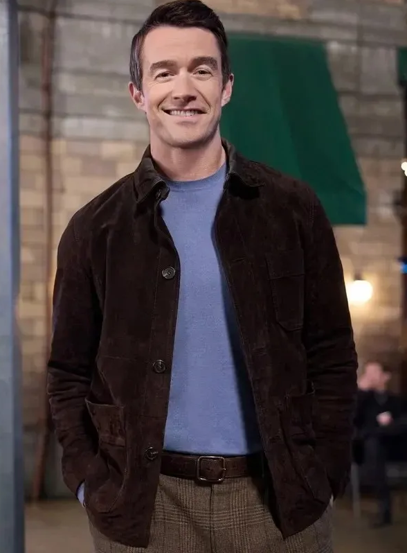 Crafted from premium, winter-ready materials, it features a versatile neutral tone with a classic zip-front closure, soft inner lining, and functional pockets. Its tailored yet relaxed fit makes it easy to layer over shirts or sweaters, while its understated design channels Robert Buckley’s on-screen charisma.