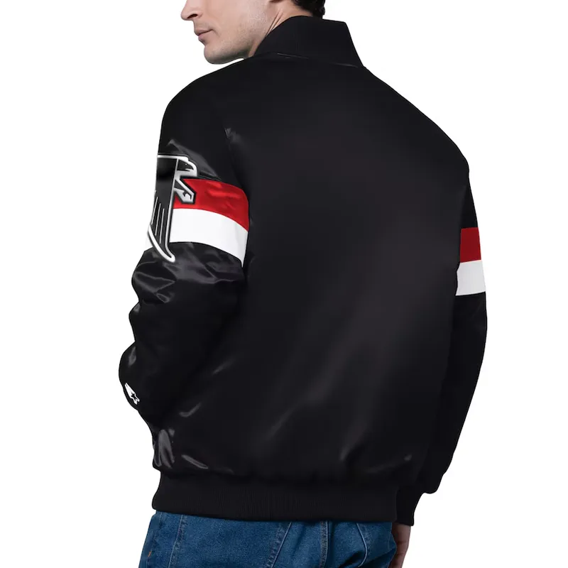 Made from premium lightweight satin, it offers that signature Starter look—sleek, smooth, and effortlessly stylish. The full-snap front, striped rib-knit trim, and traditional varsity silhouette bring retro energy, while the big, bold Falcons graphics ensure your team loyalty is on full display.