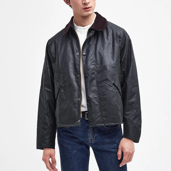 Inspired by the brand’s countryside-meets-city heritage, it features a rich sage hue with a signature weather-resistant coating, offering protection from the elements while aging beautifully over time. Traditional Barbour details—like the corduroy-lined collar, secure zip-and-snap front closure, and practical pockets—combine function with understated luxury.