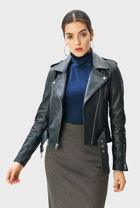 The Belted Hem Leather Jacket is a distinctive piece of outerwear that provides a customizable fit and an undeniable aesthetic edge. Defined by the presence of an integrated belt or adjustable straps located at the waist or hemline, this jacket allows the wearer to cinch the bottom for a tighter, more protective fit or to simply add a crucial layer of visual detail.