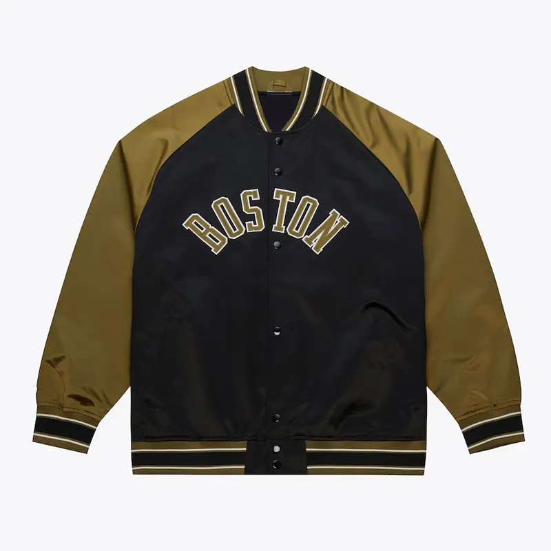 Black/Olive Boston Celtics Double Clutch Varsity Satin Jacket