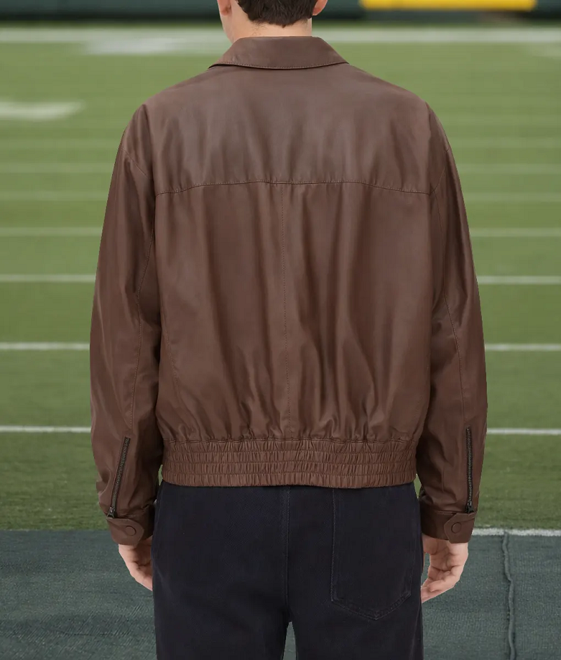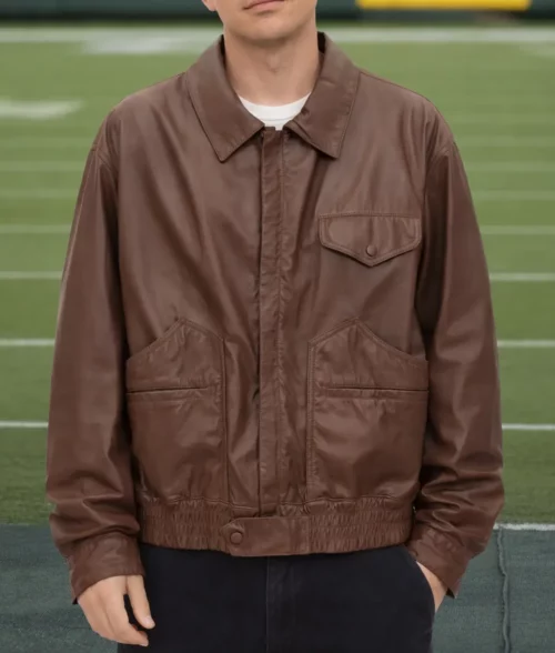 Charlie Puth Brown Leather Bomber Jacket