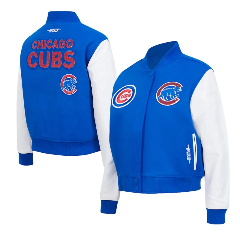 Step into timeless team spirit with the Chicago Cubs Game Day Classics Royal Varsity Jacket. Crafted for die-hard fans, this premium jacket features a rich royal blue wool body paired with genuine leather sleeves for a heritage varsity look. The iconic Cubs logo is proudly embroidered on the chest and back, celebrating the legacy of one of baseball’s most storied franchises.