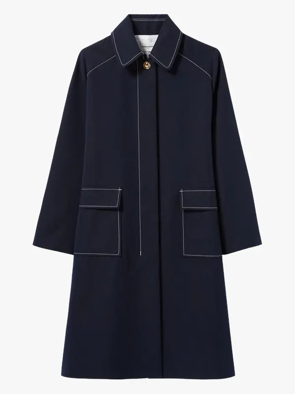 Double-Breasted Front: Features tonal or tortoiseshell-effect buttons that add a layer of vintage-inspired charm.