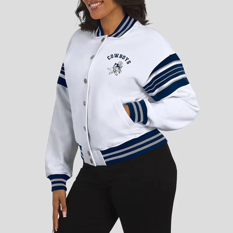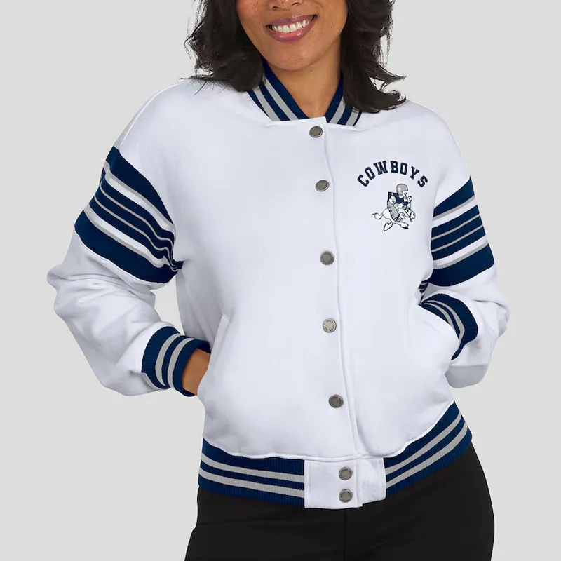White Dallas Cowboys Snap Front Bomber Fleece Jacket