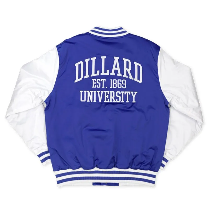 Show off your school spirit with the Dillard University Blue and White Jacket, a stylish and comfortable must-have for any true fan. Crafted from 100% satin fabric, this jacket offers a sleek and smooth finish while ensuring durability and a premium feel. The snap-tab buttoned front closure adds a classic varsity touch, while the relaxed fit provides all-day comfort. Designed with full-length sleeves and an ultra-soft viscose lining, it keeps you warm and cozy without compromising style. Featuring front welt pockets for convenience, this jacket is the perfect blend of fashion and function. Whether you’re heading to a game, campus, or a casual outing, this blue and white Dillard University jacket is the ultimate statement piece for any proud student or alumni.