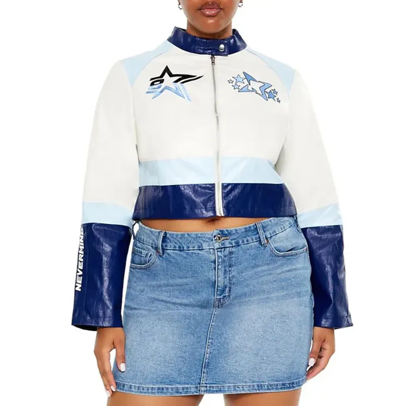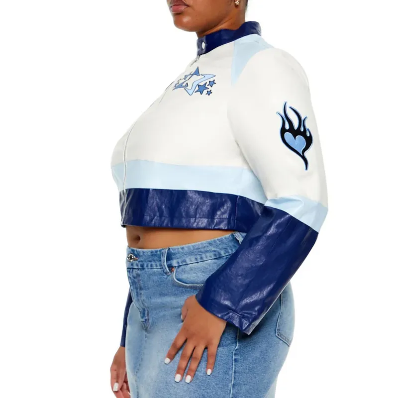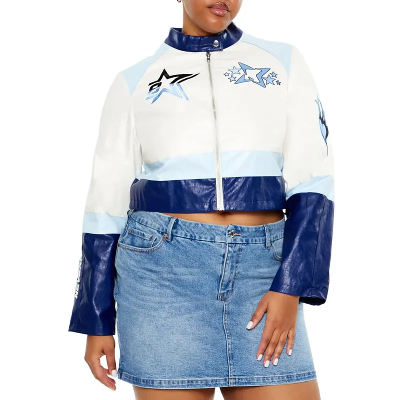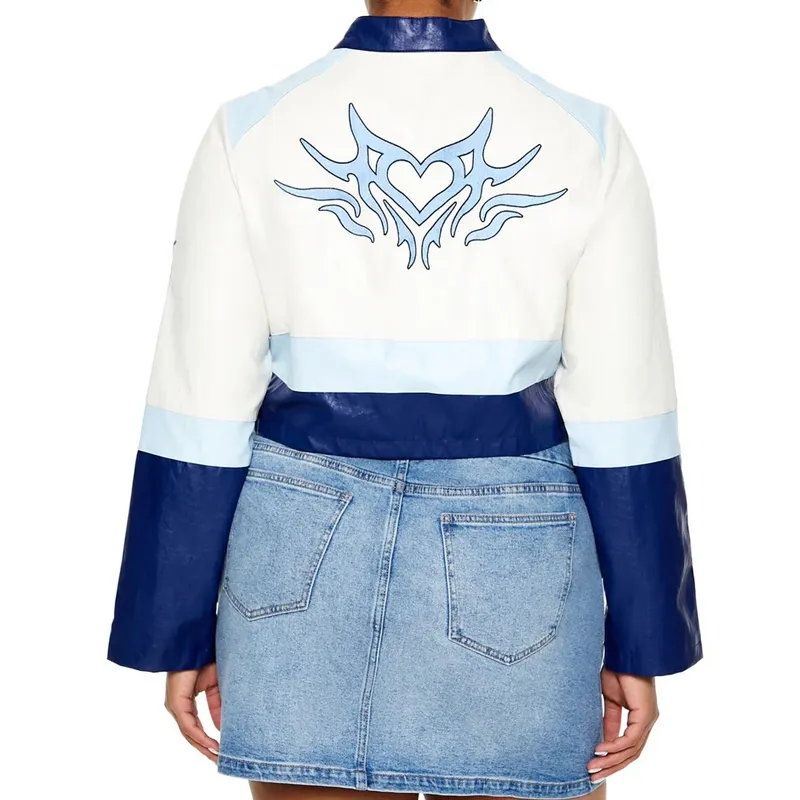 Electric Bloom Jade Castillo Cropped White and Blue Jacket