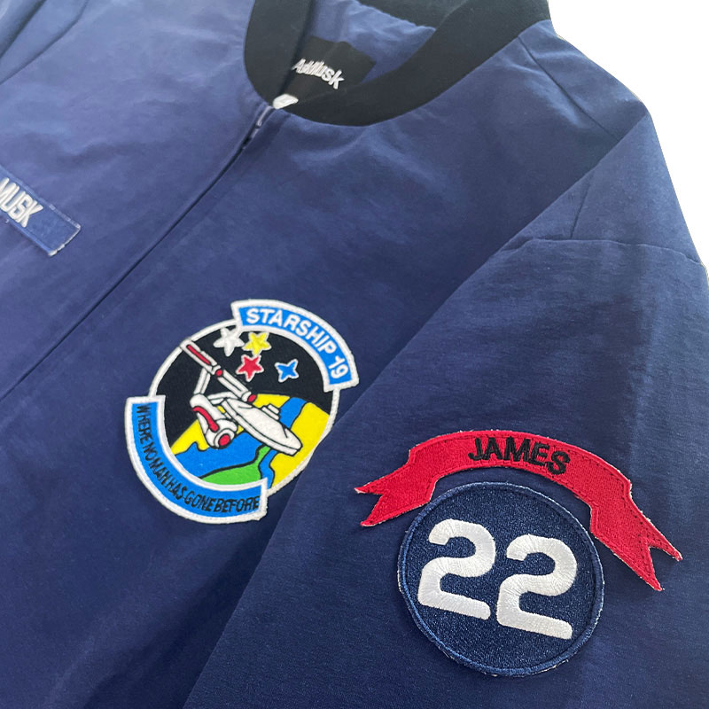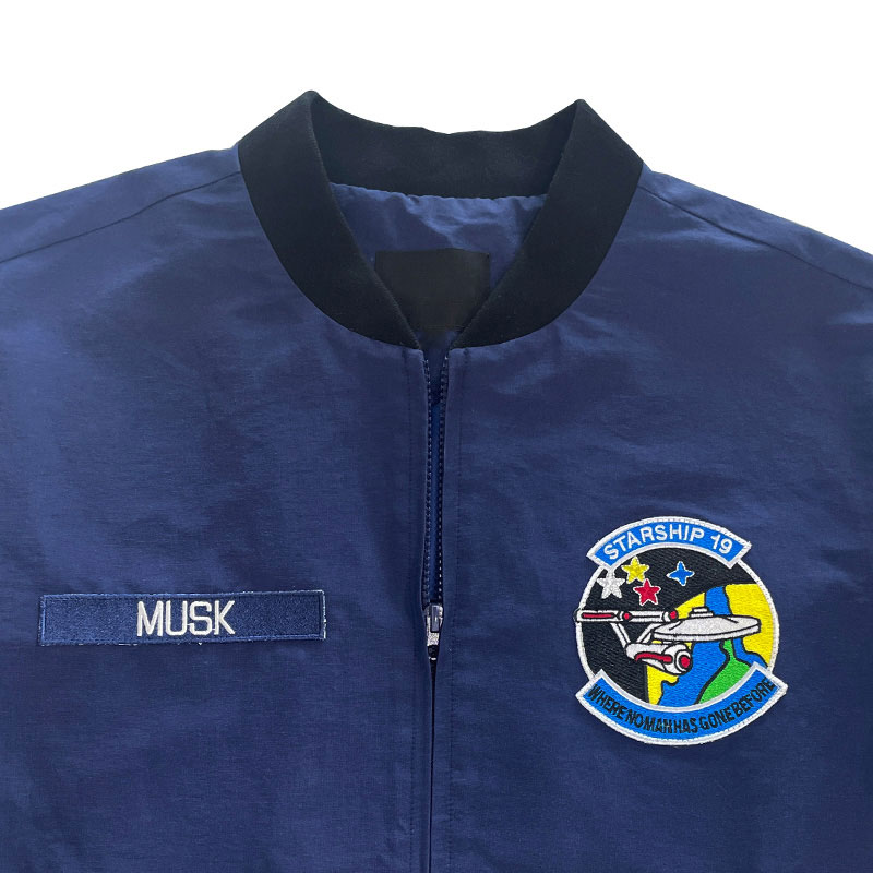 Elevate your aviation style with the Musk Aviation Academy Flight Bomber Jacket. Crafted from 100% premium nylon, this navy blue bomber jacket offers a relaxed fit with a sleek zipper closure for a timeless look. Designed for comfort and durability, it features front welt pockets for convenience and a soft viscose lining for added warmth. The full sleeves provide a classic appeal, making it the perfect outerwear for both aviation enthusiasts and trendsetters.