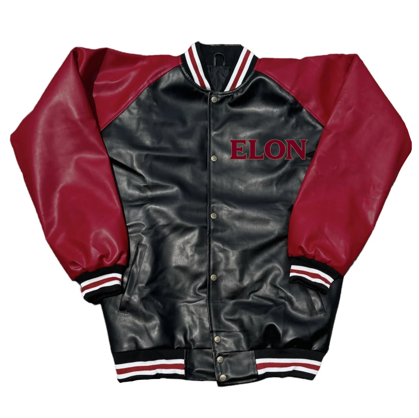 Step up your style game with the Elon Varsity Letterman Jacket, a perfect blend of classic and modern fashion. Crafted from 60% polyurethane and 40% PVC, this jacket ensures durability with a sleek, stylish finish. Available in black and red, it features a buttoned front closure, giving it a timeless varsity look. The full sleeves provide warmth and coverage, while the front welt pockets add convenience and functionality. Designed for a relaxed fit, the soft viscose lining ensures all-day comfort. Whether you’re heading to a game, campus, or a casual outing, this jacket makes a bold statement.