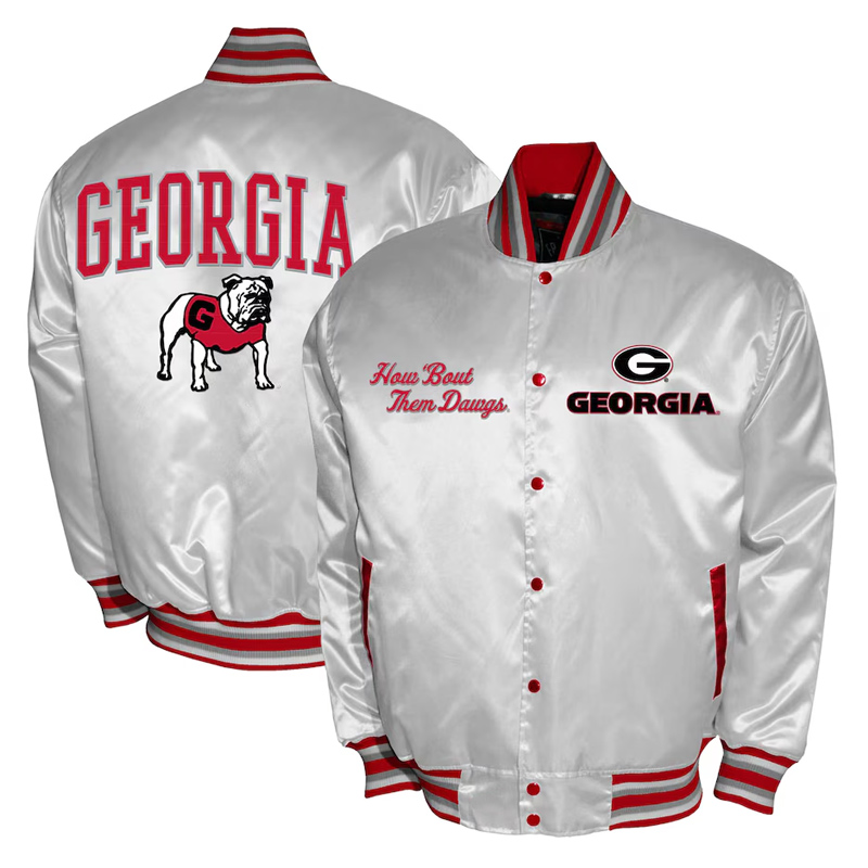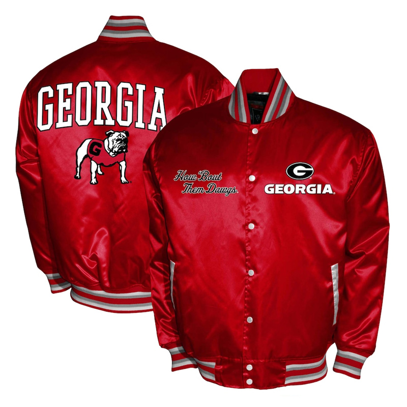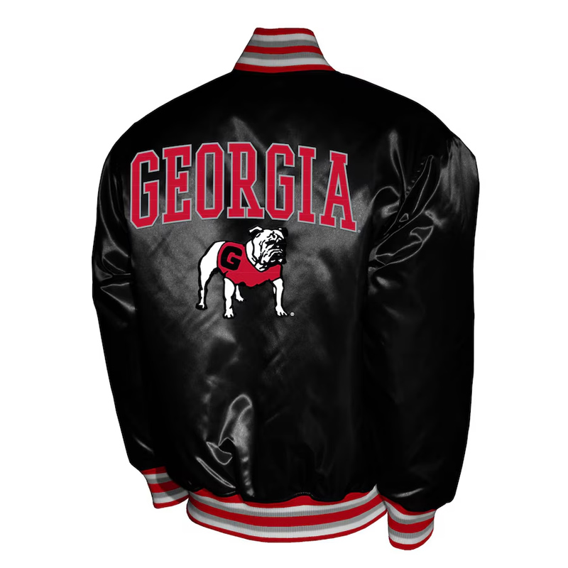 • Officially licensed Georgia Bulldogs NCAA satin jacket by Franchise Club