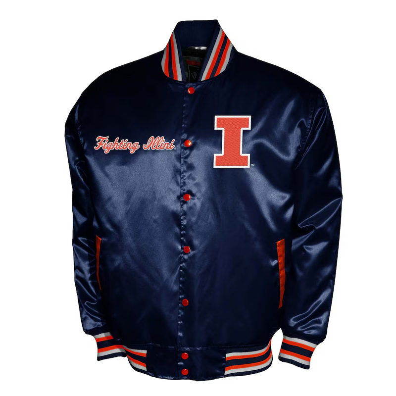 Show your school pride with the College Franchise Club Illinois Fighting Illini Satin Jacket, a sleek and timeless piece designed for die-hard Illini fans. Crafted with premium satin for a smooth, glossy finish, this jacket embodies both classic varsity style and modern comfort — perfect for game days, campus events, or casual wear.