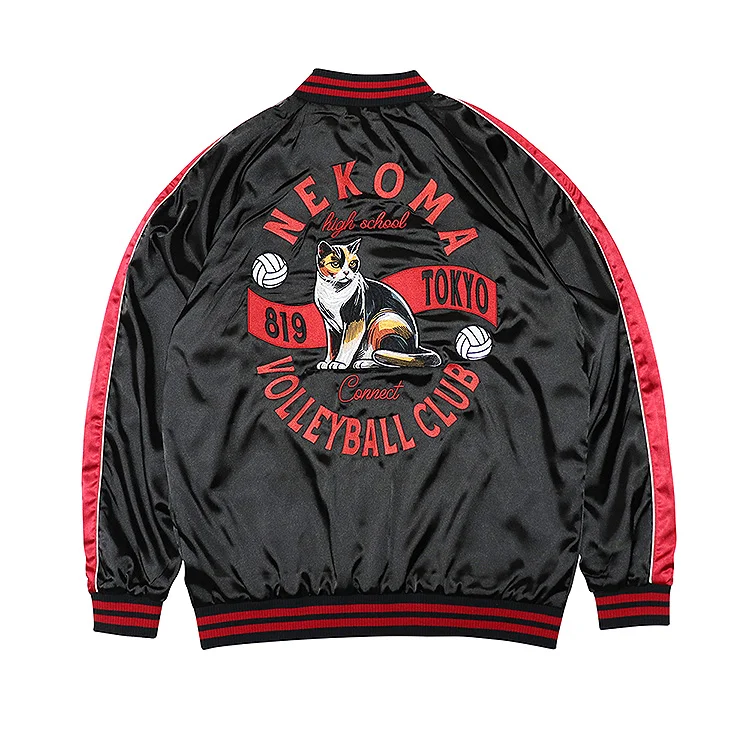 Show your allegiance to the “Cats” with the Haikyu!! Nekoma High School Souvenir Jacket, a premium piece celebrating one of the fiercest rival teams in the hit anime Haikyu!!. Blending classic Japanese sukajan (souvenir jacket) styling with authentic team-inspired details, it’s the perfect statement piece for anime fans and streetwear lovers alike.