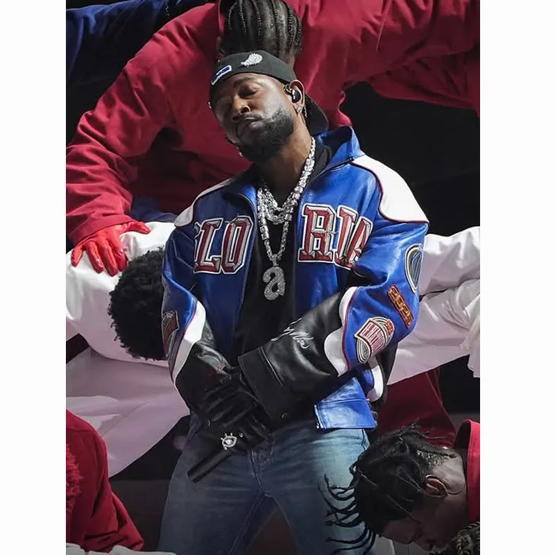 Super Bowl 2025 Halftime Show Gloria Blue Leather Jacket
