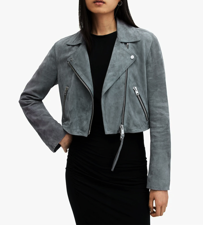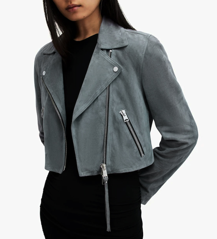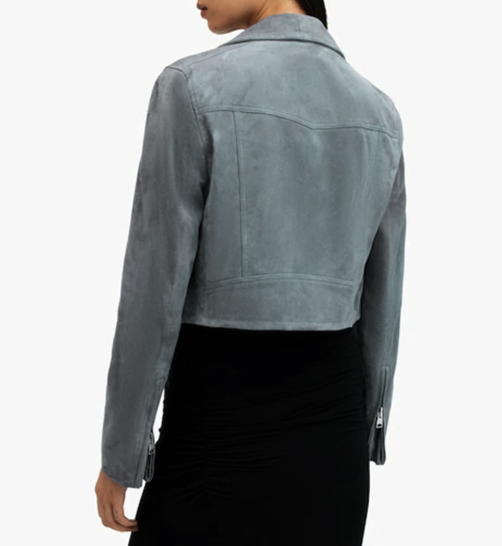 Expertly crafted from premium suede leather, the jacket offers a soft, velvety texture and a tailored silhouette that flatters every figure. The lapel collar, front zip closure, and sleek panel detailing highlight its refined yet contemporary design. A smooth inner lining ensures comfort, while zippered cuffs and pockets add a touch of functionality and urban flair.