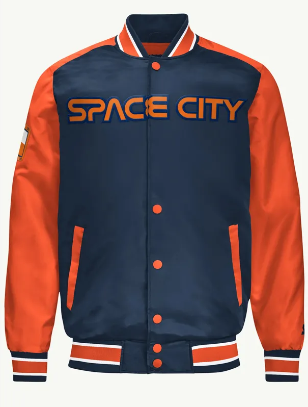 Houston Astros Blue and Orange Varsity Satin Jacket