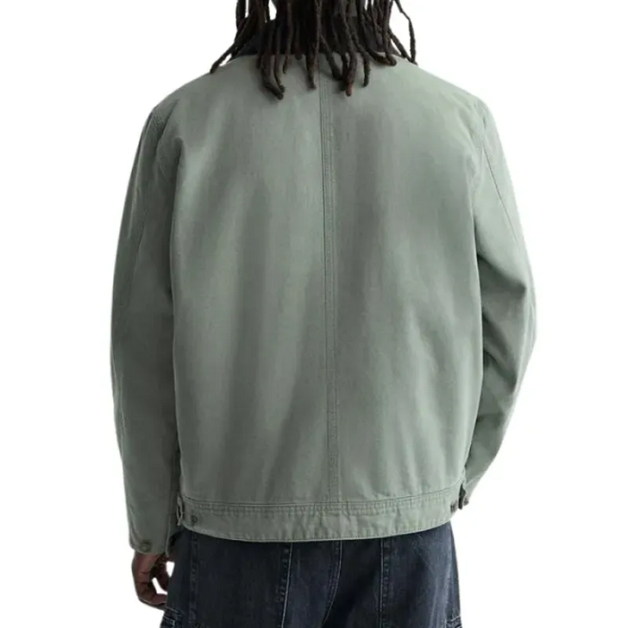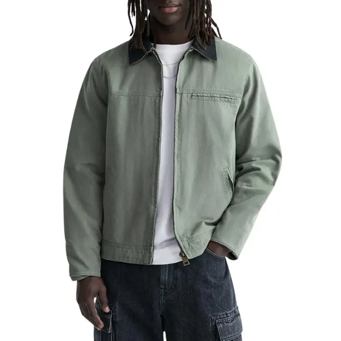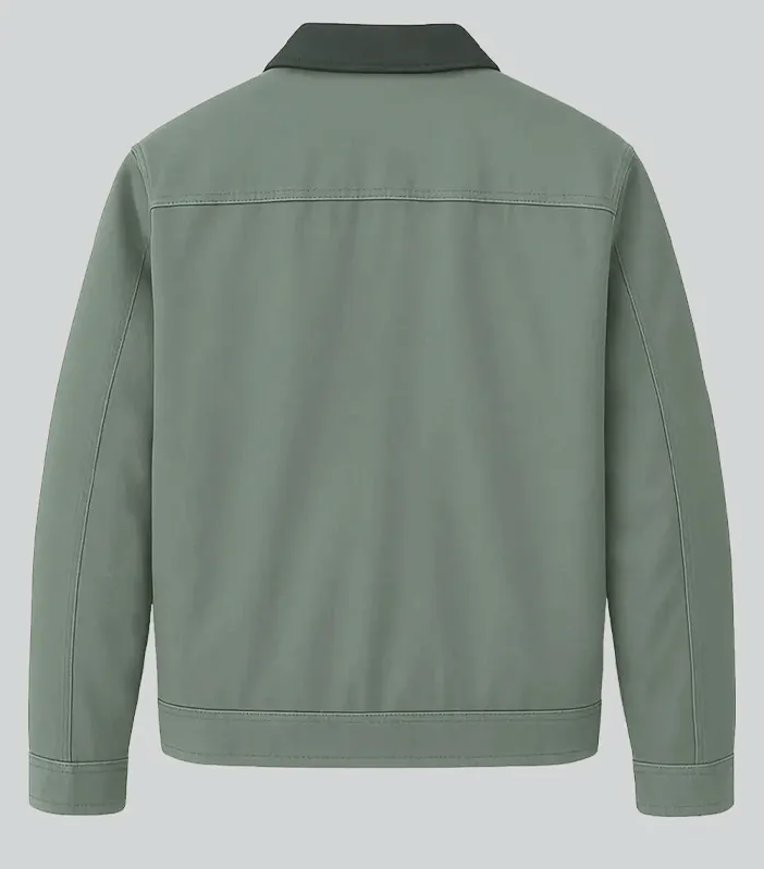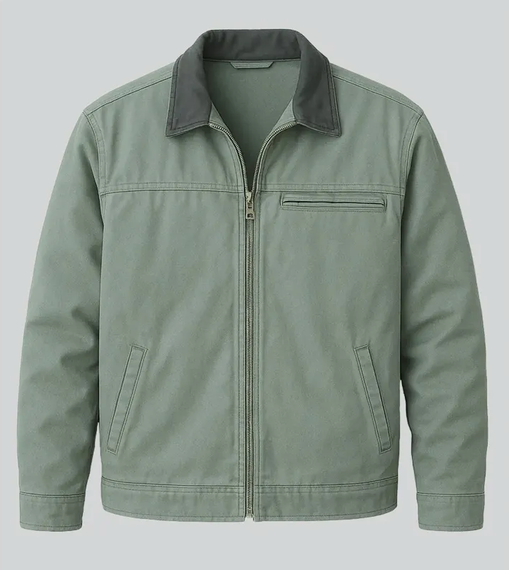 Crafted from high-quality cotton or a cotton-blend fabric, it features a muted neutral tone with a relaxed fit perfect for layering. The zip-front closure, shirt-style collar, and practical pockets give it a utilitarian vibe, while the soft inner lining ensures all-day comfort.