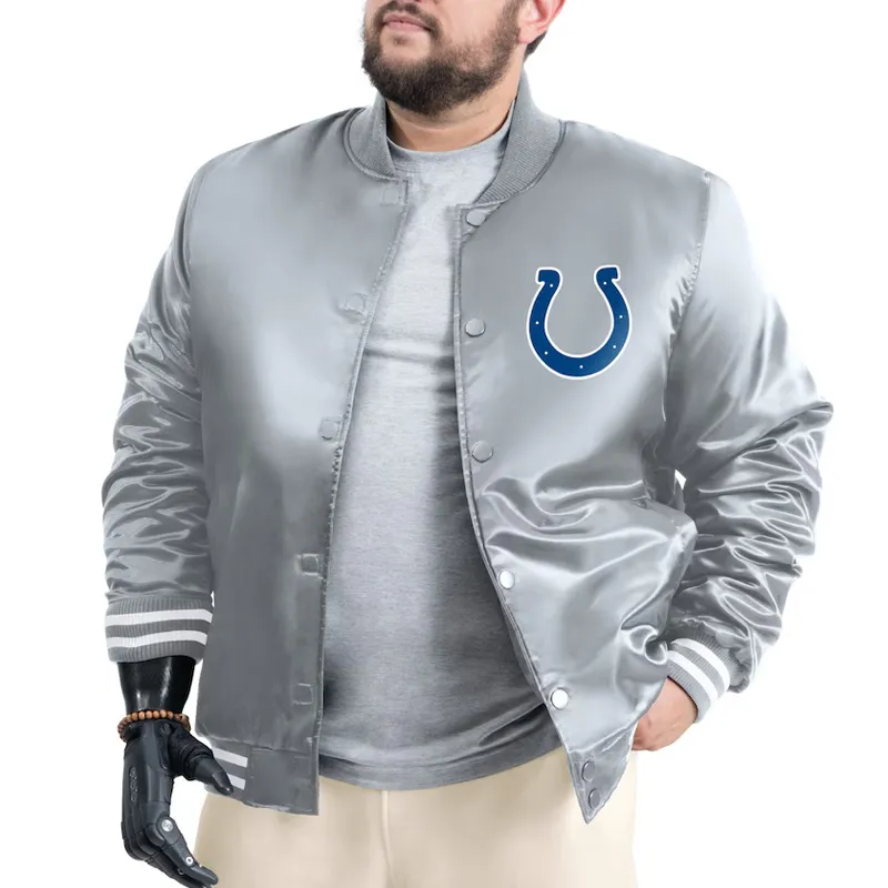 Indianapolis Colts Adaptive Team Graphic Varsity Satin Jacket