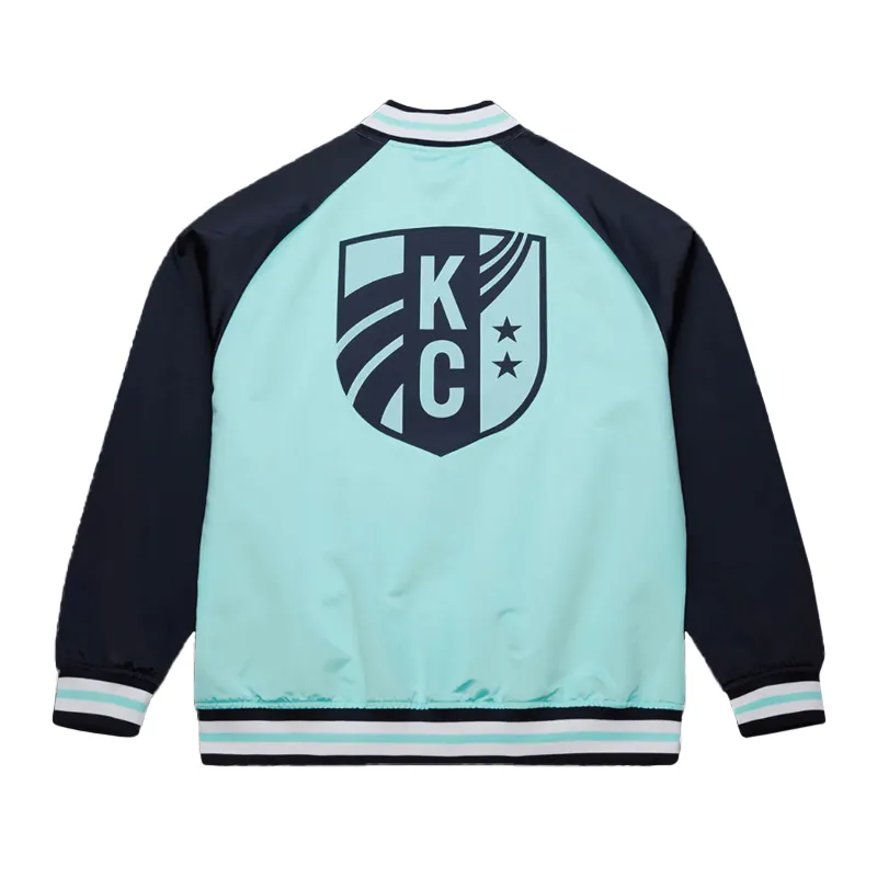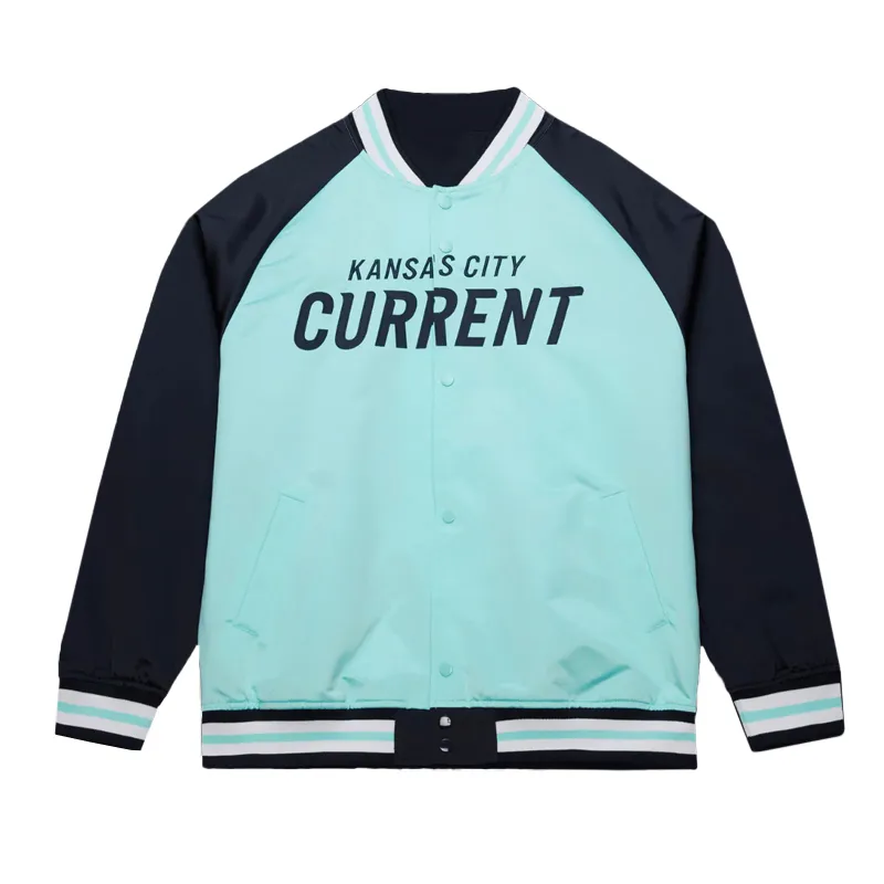 KC Current Wordmark Varsity Satin Teal and Navy Jacket