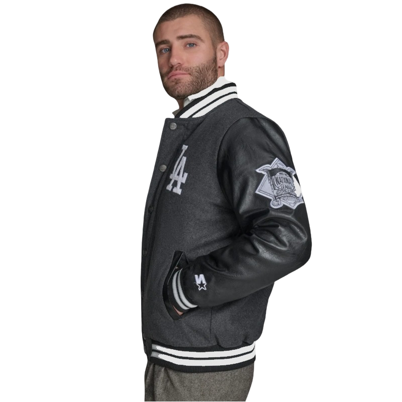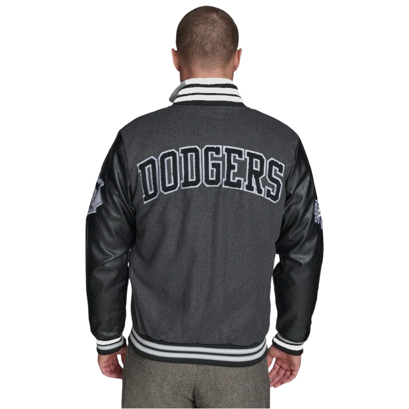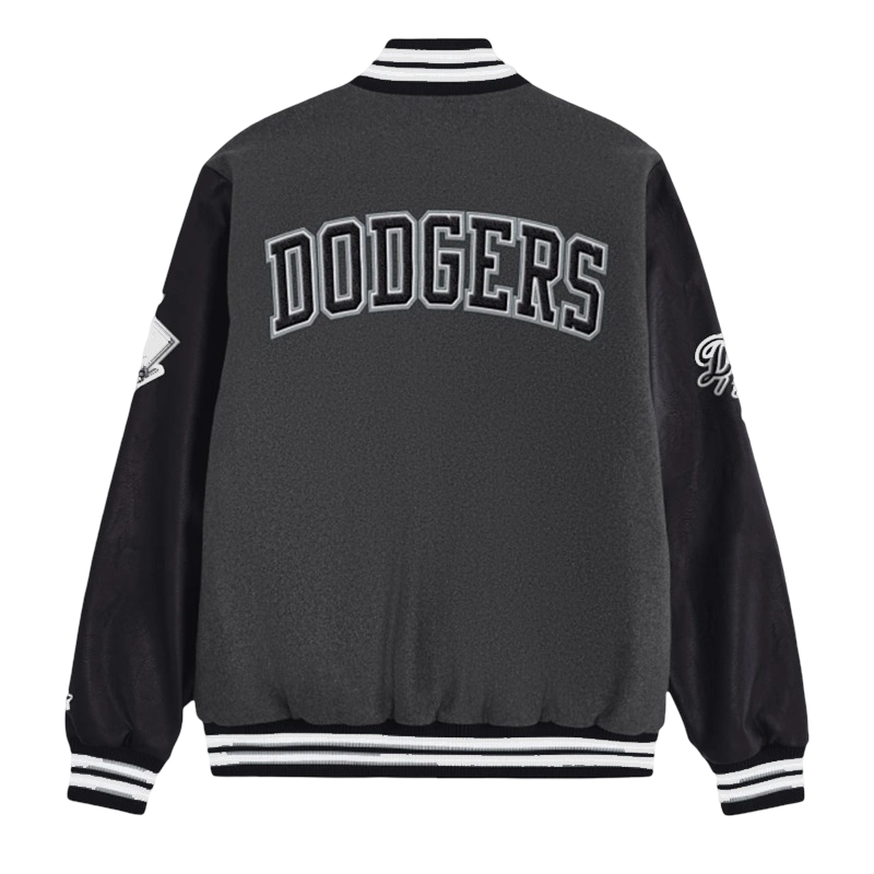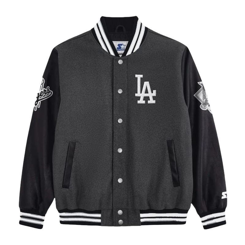 LA Dodgers First Rounder Starter Varsity Jacket Grey and Black