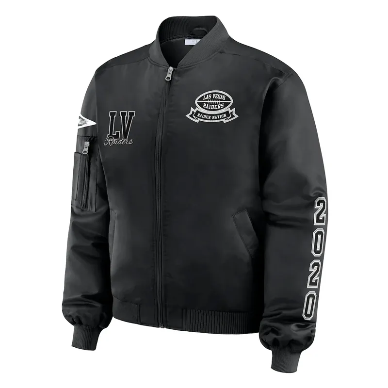 Embody the defiant spirit of the Silver and Black with the NFL Las Vegas Raiders Black Patch Bomber Jacket. As the Raiders continue to redefine their legacy in the heart of the desert, this 2026 edition bomber captures the perfect balance between classic Oakland grit and the high-stakes luxury of Allegiant Stadium.