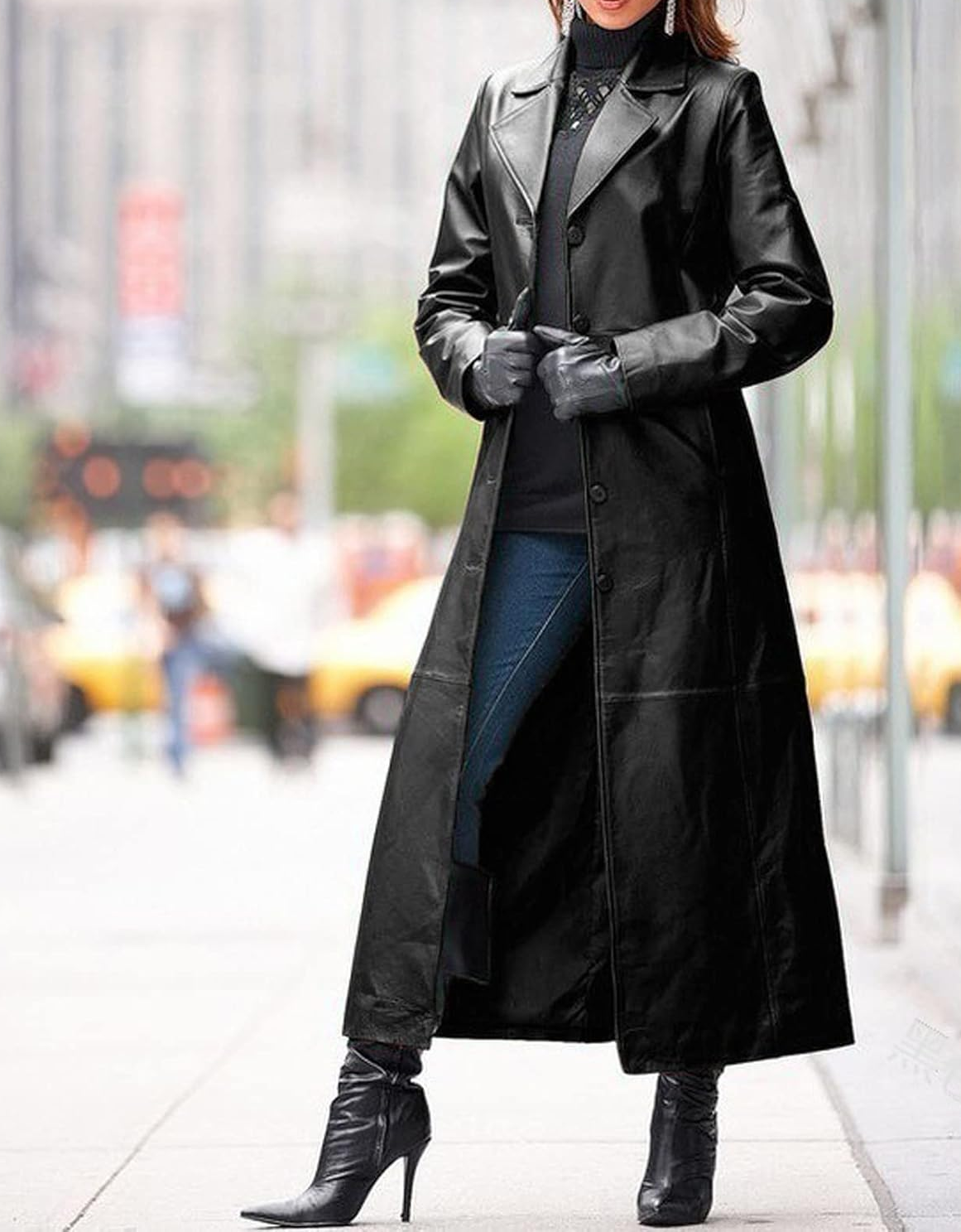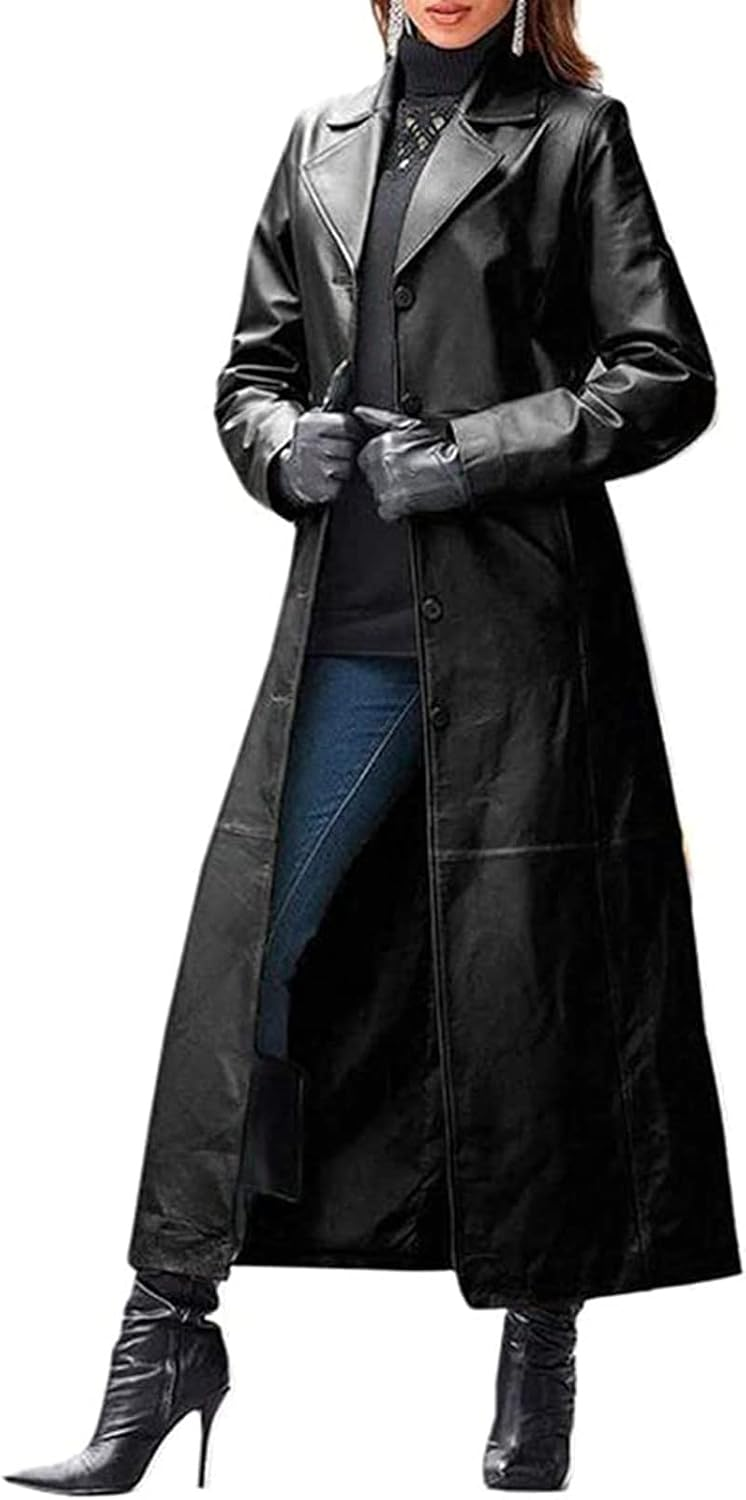 Women’s Black Leather Trench Coat