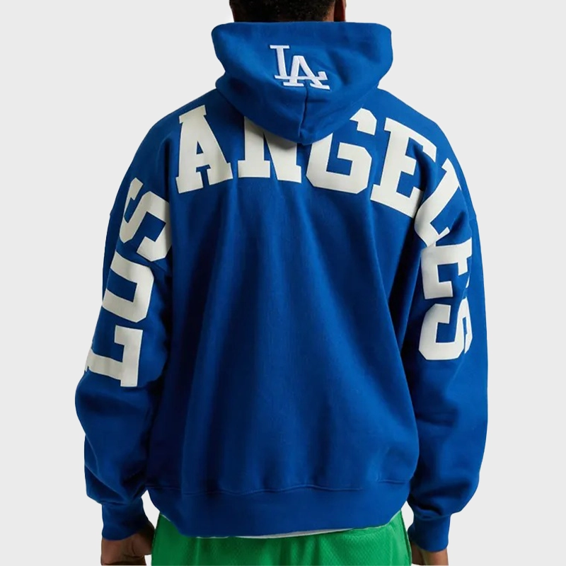Show your team spirit with the Los Angeles Dodgers Wingspan Pullover Hoodie. Made from 100% fleece fabric, this hoodie is incredibly soft, warm, and perfect for layering during cooler days. The classic blue color proudly displays your Dodgers pride, while the pullover style closure provides an easy, comfortable fit. Featuring front welt pockets, this hoodie offers both style and functionality. The relaxed fit ensures maximum comfort, and the viscose lining enhances breathability, keeping you cozy all day long. With full-length sleeves, this hoodie is an essential addition to any Dodgers fan’s wardrobe.