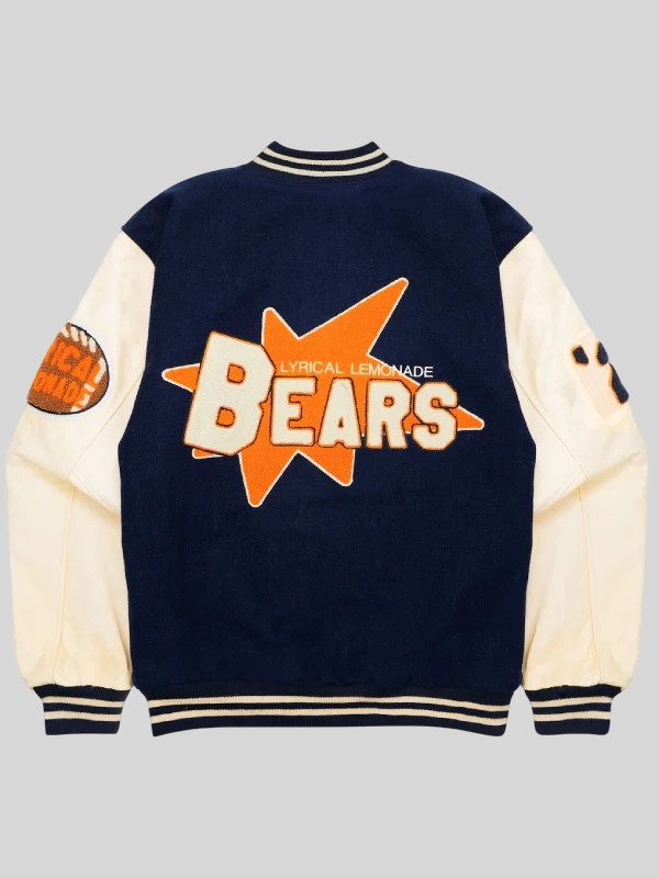 Back: Showcases complex, multi-layered embroidery and/or patches that merge the Bears logo with Lyrical Lemonade’s signature Lemon/Carton motif.