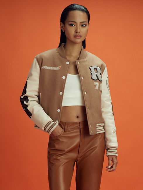 Mclaren F1 Leather Camel Varsity Jacket