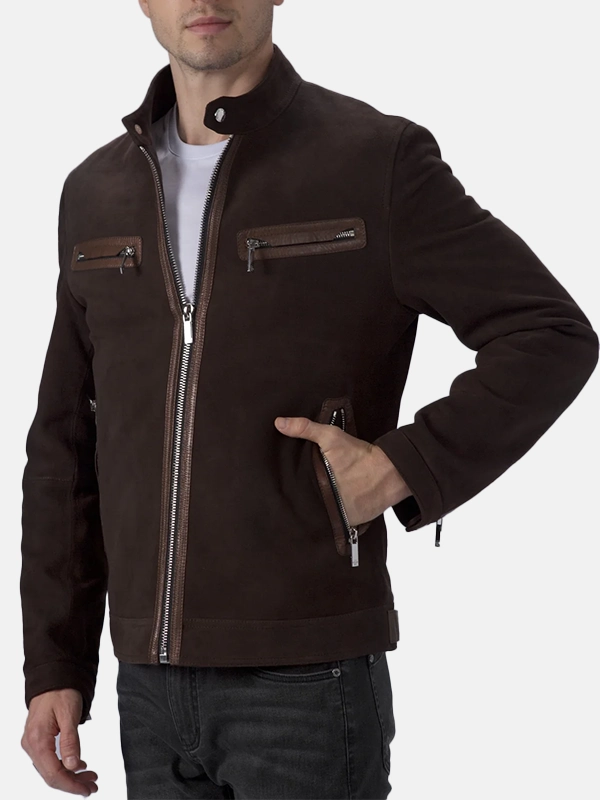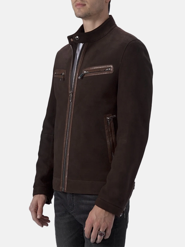 Men’s Suede Leather Brown Cafe Racer Jacket