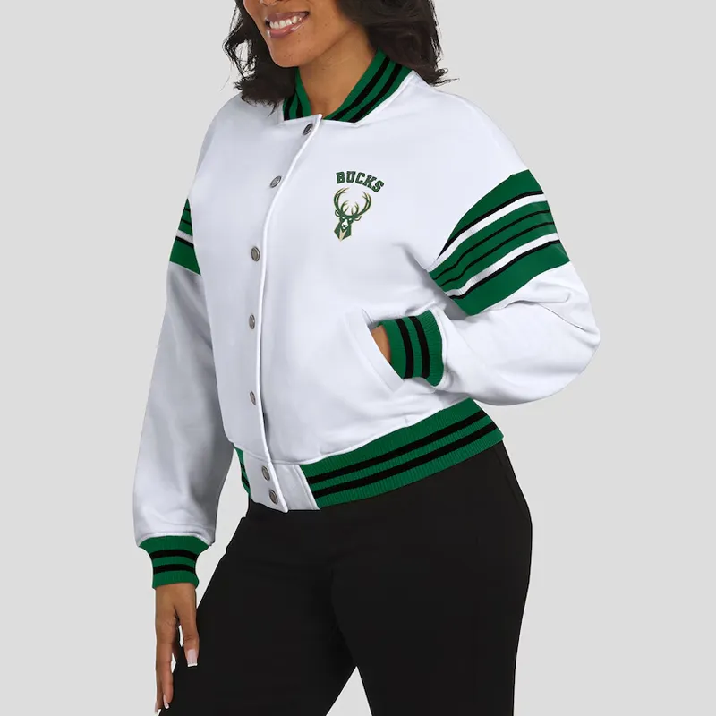 Milwaukee Bucks Snap Front White Fleece Jacket