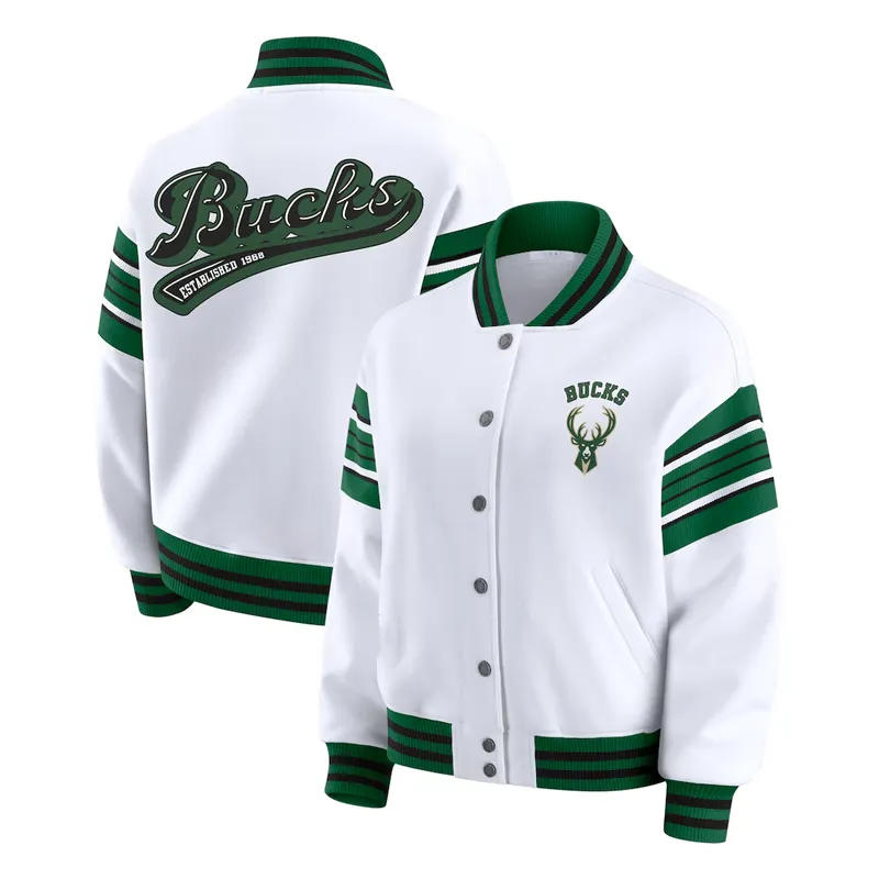 Milwaukee Bucks Snap Front White Full-Snap Fleece Jacket