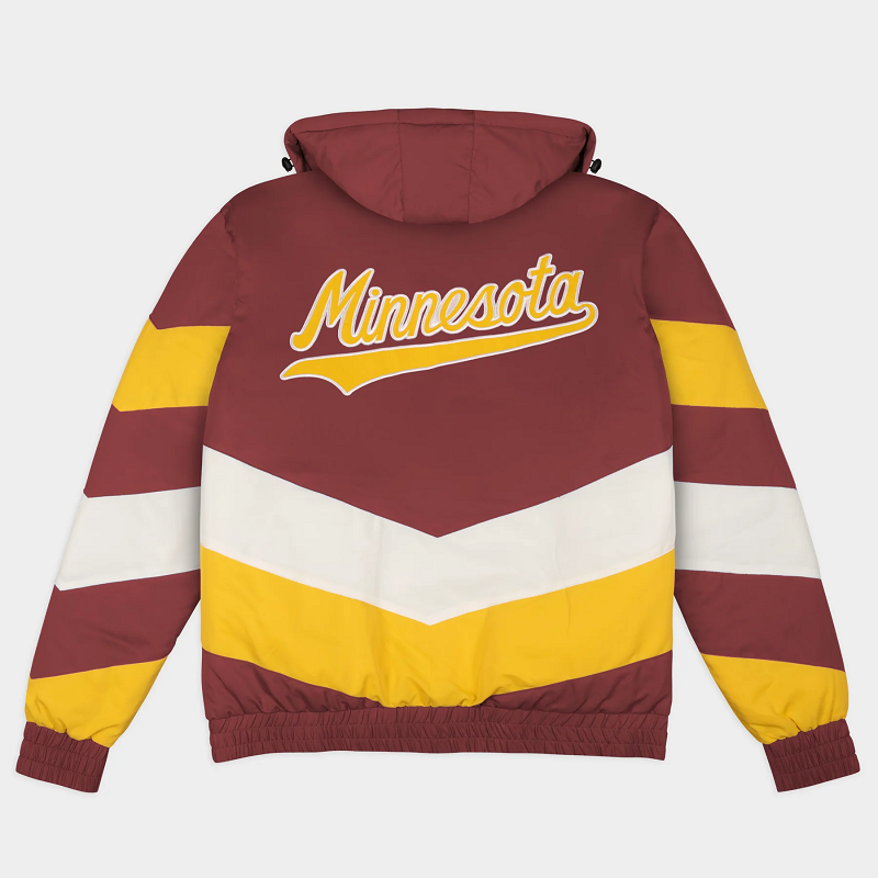 Crafted from high-quality materials, it features the iconic maroon and gold colorway, reflecting the Golden Gophers’ traditional colors. Embroidered Minnesota logos and Gamebreaker detailing add authentic collegiate flair, while the snap-button front closure, rib-knit collar, cuffs, and waistband, and soft inner lining ensure warmth, comfort, and a secure fit.