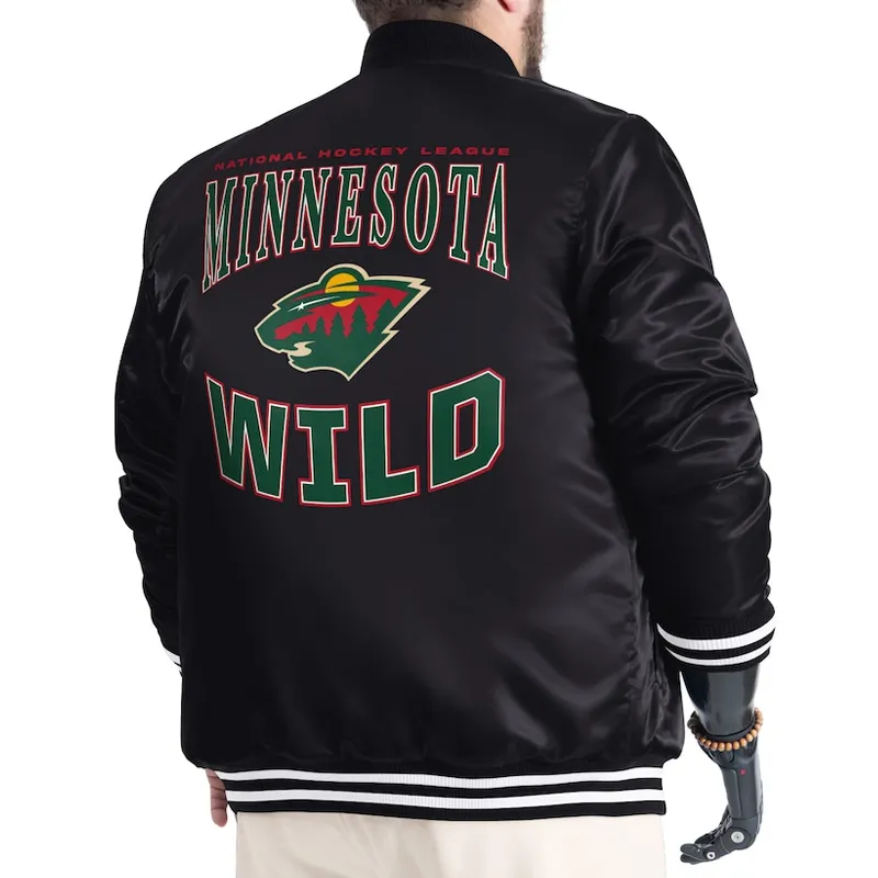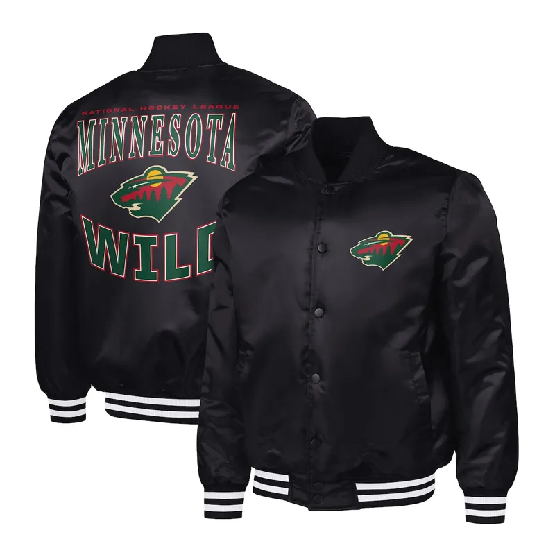 Minnesota Wild Adaptive Bold Logo Black Varsity Satin Jacket Full-Snap
