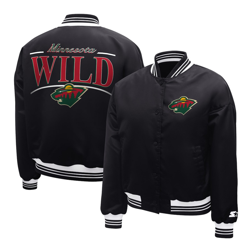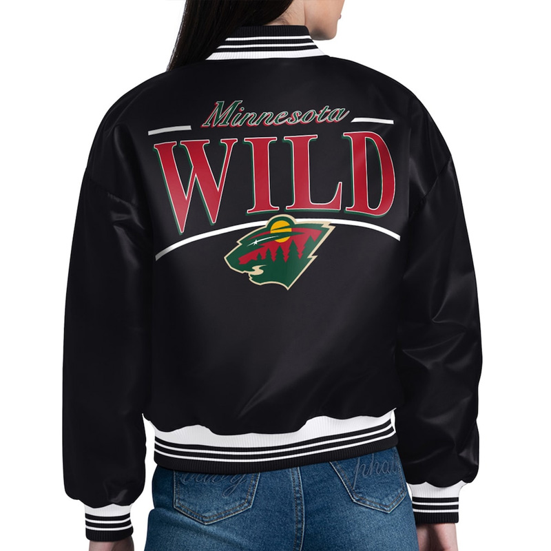 Minnesota Wild Arch Stripe Black Full-Snap Satin Jacket