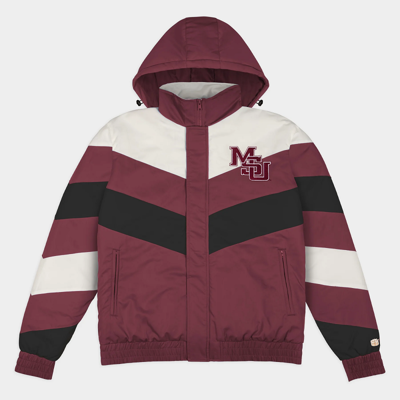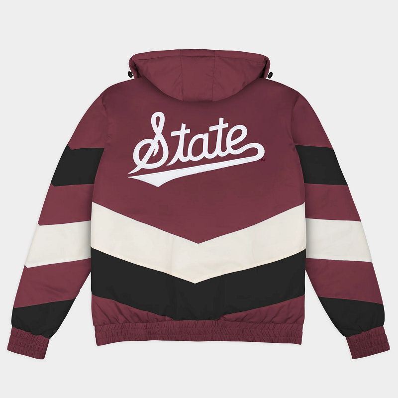 Made from high-quality, durable materials, it features the signature maroon and white color scheme that every MSU fan knows and loves. The embroidered Bulldogs logo and Gamebreaker detailing add an authentic collegiate touch, while the snap-button front closure, rib-knit collar, cuffs, and waistband, and soft inner lining ensure a cozy and secure fit.