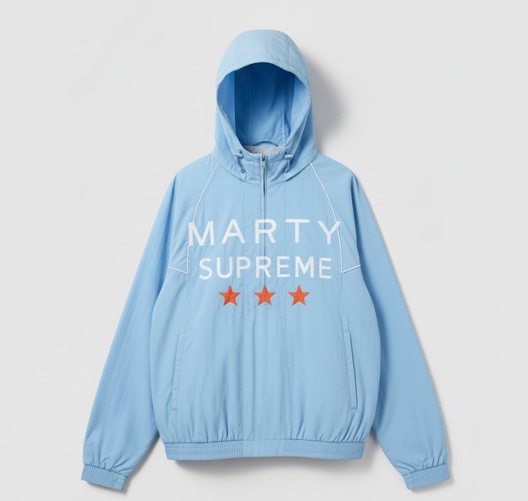 Step out in effortless street-style sophistication with the Marty Supreme Light Blue A24 Classic Warm Up Jacket. Crafted with a durable polyester shell, this jacket delivers lightweight warmth and everyday comfort, making it ideal for transitional weather. The refreshing light blue color gives it a clean, modern aesthetic, while the hooded collar adds both style and functional protection.