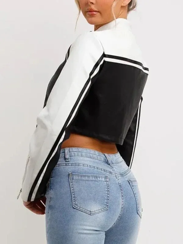 NBA All Star Celebrity Game 2026 Jenna Bandy Cropped Two Tone Leather Jacket