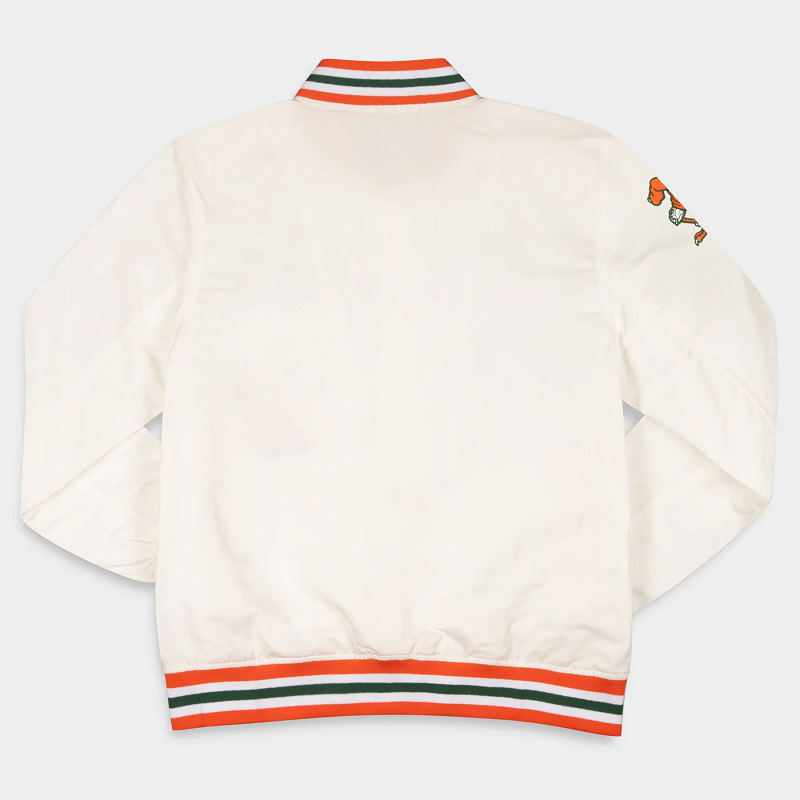 Miami Hurricanes Whiteout Full-Snap Bomber Satin Jacket