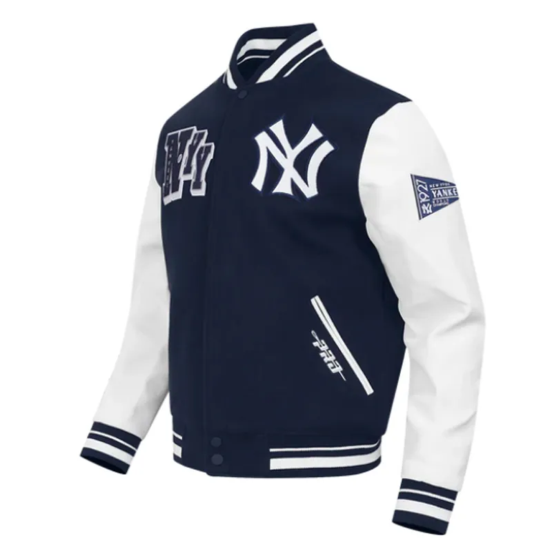 Navy/White New York Yankees Best of Classic Rib Varsity Wool/Leather Jacket