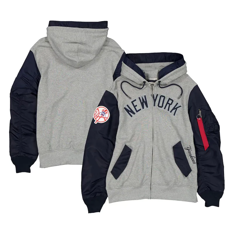 NY Yankees Heather Gray/Navy Full-Zip Hoodie Jacket