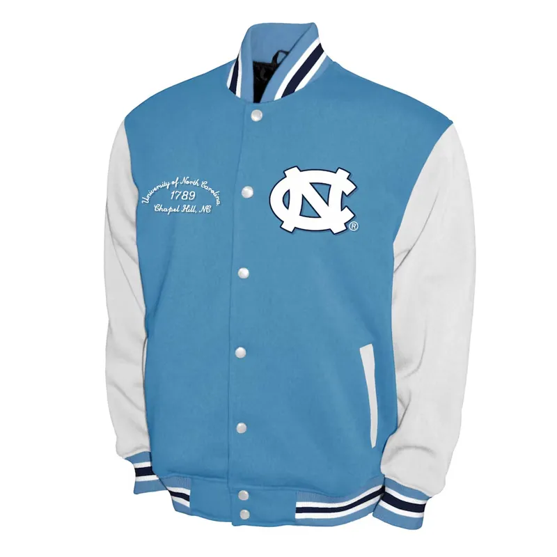 North Carolina Tar Heels Fleece Carolina Blue and White Varsity Jacket