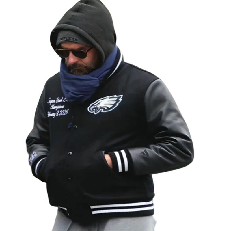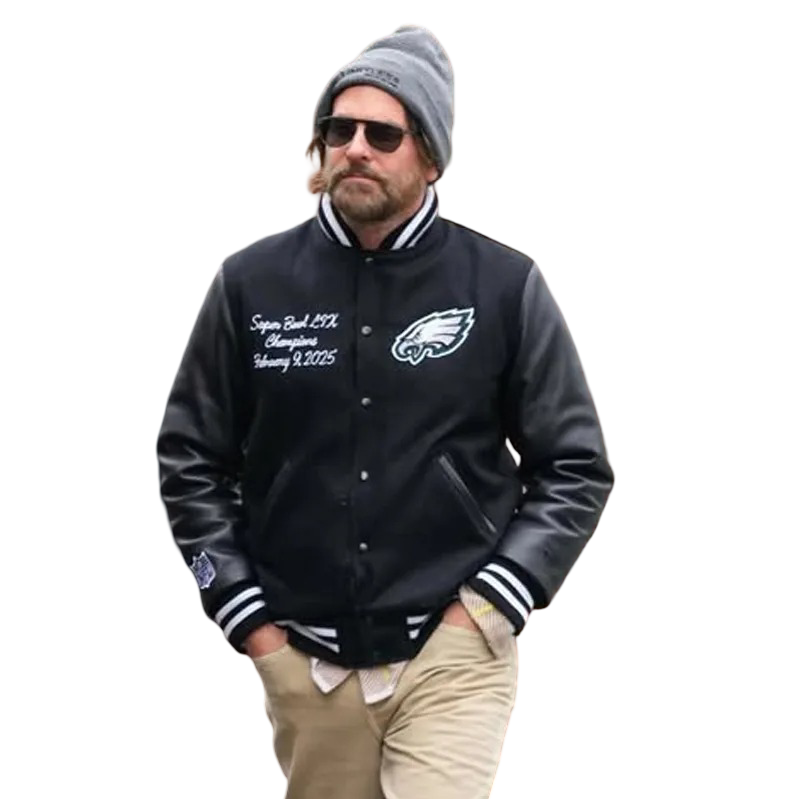 Show off your Eagles pride with Hollywood flair in the NYC Philadelphia Eagles Bradley Cooper Varsity Jacket — the same iconic look rocked by Bradley Cooper in his unforgettable Philly moments. This jacket is the ultimate fusion of celebrity style and die-hard team loyalty, perfect for repping your squad with confidence.