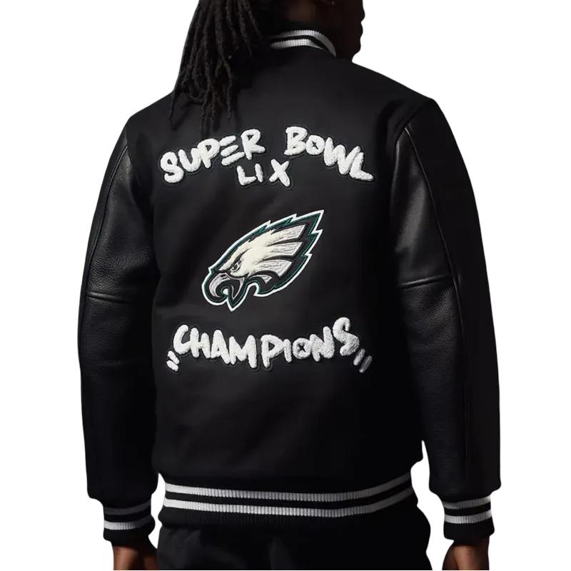 NYC Bradley Cooper Philadelphia Eagles Varsity Black Wool/Leather Jacket