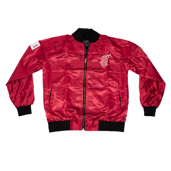 Upgrade your wardrobe with the ONI BOSS Bomber Jacket, crafted from 100% polyester satin for a sleek and stylish look. This eye-catching red bomber jacket features a smooth zipper-style front closure, adding a modern touch to its classic design. The relaxed fit ensures all-day comfort, while the soft viscose lining provides a luxurious feel. Functional front welt pockets add practicality, making it a versatile choice for casual outings or layering in cooler weather. With full-length sleeves, this jacket combines fashion and functionality effortlessly.